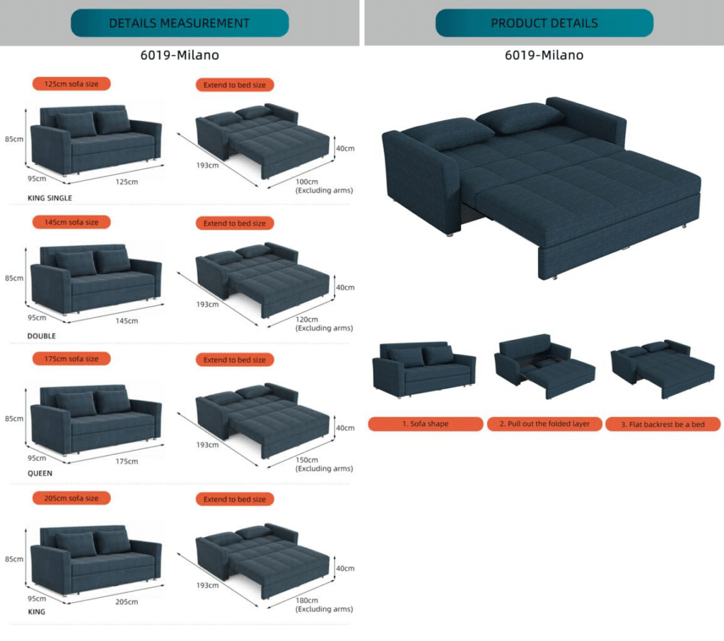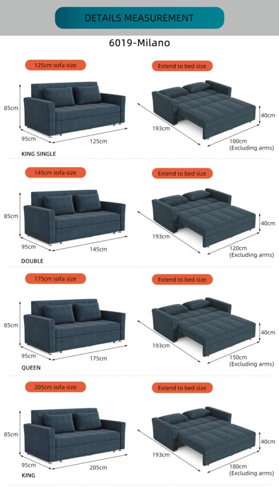 Milano is built to last made with the best materials available 7cm solid pine wood base for extra support and strength. Manageable seating and sleeping position height as a normal sofa for ease and comfort.